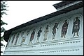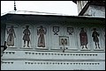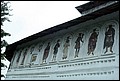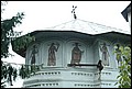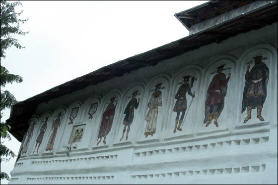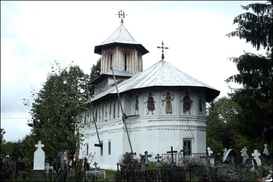 Biserica, ridicată la 1797, cu hramul inițial "Sf. Ioan Botezătorul, Sf. Nicolae și Cuvioasa Paraschiva" a fost ctitoria lui Matei Vameșu, a soției sale Florica și a fiului lor, Ion. Meșteri pietrari au fost Gheorghe și Petru din Igoiu. Biserica a fost pictată între anii 1800-1801. Ctitoria are fațadele pictate în întregime cu personaje și diverse scene. Procedeul, provenind din Gorj, reprezentând ctitori pe fațadele lăcașului de cult, constituie o formulă iconografică specifică ce cunoaște o relativ largă răspândire, după 1820 el depășind granițele unui fenomen strict local. În acest caz, discursul pictural pare că face apel la figurile stilistice specific retoricii insistenței și repetiției cum ar fi: emfaza (acordarea unei importanțe deosebite unei figuri sau imagini), aliterația (repetarea unor imagini sau forme spre a produce un efect expresiv sau simbolic) și diafora (imaginea sau forma repetată capătă un înțeles fin nuanțat) (Valeriu Drăghiceanu, Monumentele Olteniei, vol.I, BCMI, XXIV, 1931). În a doua jumătate a anului 2008, biserica se afla într-o foarte bună stare de conservare. |