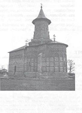 pronaos), şi anume: din motive care nu vor putea fi elucidate decāt prin degajarea īntregii fundaţii a absidei laterale de sud, la ridicarea bisericii actuale s-a procedat la orizontalizarea fundaţiei acesteia, īncepānd cu colţul de sud-est al pronaosului pānă, inclusiv, la contrafortul amintit mai sus. Orizontalizarea s-a realizat printr-o zidărie cu aspect de elevaţie, īn ciuda faptului că,. prin funcţie şi cota la care era situată {ea aflāndu-se sub nivelul de călcare din jurul bisericii actuale), ea servea drept fundaţie.