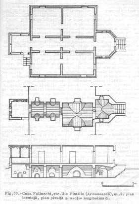 Forum cultural Anul VIII, nr. 2, iunie 2008 (29) dărâmături aflându-se încă, în 1978, în pivniţa casei Falinschi. Î nvelitorile înalte, din şindrilă (adesea acoperite cu tablă), cu streşini late ce urmăresc un contur poligonal la pridvoare şi sacnasiuri, se mai păstrează la un număr restrâns de case, dar au fost înlocuite deja cu inexpresive învelitori plate, din tablă şi fără streşini, la casele Falinschi, Ibrăileanu – Jeleş, Maximovici şi Chiriac (str. Ilie Pintilie – Armenească nr. 2, 66, 68 şi 70) pierzându- se în acest fel şi rarele exemplare de dulgherie medievală constituite de şarpantele originare. Un al zecelea exemplar, casa din str. 30 Decembrie nr. 3 (fig. 42), deosebit de interesant prin sgrafitul „Sofian 1768” care se păstrează în pivniţă, a fost îmbrăcat într-o arhitectură eclectică, realizată în jurul anului 1900, pridvorul deschis fiind transformat într-o încăpere obişnuită. Precizăm că cercetarea care stă la baza studiului de faţă nu este exhaustivă şi credem că numeroase case care apar astăzi cu înfăţişarea specifică sfârşitului de veac XIX cuprind pivniţe şi chiar părţi din nivele superioare ale unor case mult mai vechi, integrate în clădirea mărită şi nou decorată. Dăm ca exemplu casa din str. Unirii nr. 10, construită în jurul anului 1860 de familia Baltă, exmplu de eclectism cu reminescenţe neo-gotice, care include o pivniţă cu plan în formă de T; bolţile în leagăn executate din cărămidă îngustă şi chiar din piatră, pe o porţiune imitată, permit datarea acestui nivel în veacul al XVIII-lea. NOTE 58 Paul Petrescu, Arhitectura civilă a Botoşanilor, SCIA, seria artă plastică, t.16, nr. 2, 1969, p.283-297. 59 Istoria României, III, p.1121. 60 P. Petrescu, op.cit., p.287-289:casele Maximovici, Falinschi şi din str. Mioriţa nr. 14 (declarată monument istoric prin HCM 1160/1955). 61 Casa Falinschi, str. Armenească nr.2; casa Ibrăileanu-Jeleş; str. Armenească nr. 66; casa Maximovici, str. Armenească nr. 68; casa Chiriac, str. Armenească nr. 70; casa din str. Mioriţa nr. 13. 62 P. Petrescu, op.cit., p.286, fig.1; p.287, fig. 2. 63 A.I. Gheorghiu, M. Olinescu, Botoşanii care se duc, Botoşani, 1927. 64 Casa din str. Dochia nr. 14 (dărâmată în 1980); casa Cerchez, str. Războieni nr. 11; casa Ciomac- Cantemir, str. 30 Decembrie nr. 9; casa din str. Mioriţa nr. 14. |