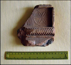 Foto 7 ceramice datând din secolul al XV-lea. Pe nivelul corespunzător secolului al XVI- lea la adânciea de (doar) 0,55-0,60 m au fost descoperite nu mai puţin de cinci cuptoare de redus minereul, situaţie altfel previzibilă, dacă