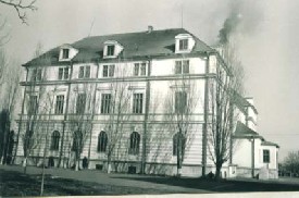 Fig. 152. Spitalul vechi (Mavromati). Reproducere din Albumul general al României Şcoala se afla pe strada Marchian, în apropierea intersecţiei cu str. Cuza Vodă şi a fost dărâmată după cel de-al doilea război mondial, invocându-se uşoare avarii ce puteau fi uşor remediate. De asemenea, a fost dărâmat spitalul Mavromati, construit în 1838, şi mărit ulterior, probabil în perioada 1850-1860, judecând după arhitectura exterioară de factură romantică (fig. 152). Fig. 153. Şcoala primară nr. 1 din Bulevardul Eminescu nr. 30. Vedere din 1893 – reproducere din Albumul general al României