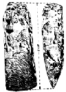 14.Castron I:6,5 cm; D.M.: 22 cm Inv. 1698 Fragment de castron. Realizat din pastă densă, cu amestec de cioburi pisate, ars oxidant. Vasul are buza rotunjită, înclinată spre interior, umărul ascuţit, în carenă. Corpul este usor arcuit, aplatizat, fundul nedefinit. Interior vasul a fost pictat în întregime cu roşu- brun. Exterior, pe acelaşi fond roşu-brun s-a decorat cu alb pe două registre, pe buza şi pe corpul vasului, delimitate prin benzi circulare pictate şi rezervate . Zona de pe buză prezintă o friză compusă din triunghiuri realizate cu ajutorul unor benzi liniare ce se întilnesc alternativ pe buză sau pe umărul vasului. Fundul este ornamentat cu benzi liniare arcuite . Despre două topoare de silex dintr-o colecţie particulară Ioan Ignat1 În luna septembrie a anului 2010, ne-au fost oferite spre analiză şi publicare, de către directorul Şcolii cu clasele I-VIII, Lozna, com. Lozna, jud. Botoşani, profesorul de istorie Ilie Oanea2, două topoare de silex, descoperite de către elevii din sat în urmă cu mai mulţi ani, probabil în punctul "Fânaţ" al satului Străteni, com. Lozna. Elevii au predat obiectele profesorului lor, fără a se cunoaşte dacă, în punctul amintit, sunt prezente şi alte vestigii. În ceea ce priveşte această locaţie, menţionăm că nu este cuprinsă în paginile repertoriului arheologic al judeţului Botoşani din 1976, fiind numai amintit un topor-ciocan dintr-o rocă neprecizată, descoperit în acelaşi loc şi aflat, în momentul întocmirii