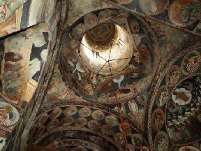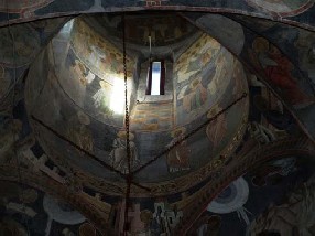 Schela montată în naos şi prelungită în turlă ne-a facilitat observaţii directe la sistemul de boltire şi la tamburul turlei. În urma măsurătorilor pe care le-am efectuat, a rezultat că înălţimea totală a turlei, măsurată din cheia bolţii şi până la baza tamburului este de 10,65 m; precizăm că la această măsurătoare este posibilă o eroare de ± 1 ÷ 5 cm., ca urmare a modului de măsurare, prin adiţie, permis de tronsoanele schelei. Semnificativă pentru modul de execuţie al tamburului este adaptarea, în fond dificilă, 37
