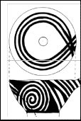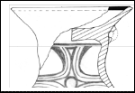 Modelat din pastă semifină, ars oxidant. Se păstrează un corp din cele două, puntea de legătură de jos şi jumătate din cea de mijloc. Este ornamentat bicrom cu brun pe fond alb. Pâlniile sunt pictate cu spirale flancate de benzi arcuite. Zona de mijloc este ornamentată cu dungi orizontale negre, iar fragmentul de punte cu benzi arcuite. Pâlnia superioară e pictată interior cu trei benzi negre ce se întretaie în zona punţii superioare. 4. Strachină (fragmentară) I: 4 cm; D.M. 10 cm Inv. 1700