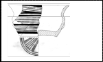 "frunze"zimţate rezervate. Interspaţiul e pictat cu negru întins. Interior, pe buză s-au pictat pe fond alb benzi liniare arcuite roşii între care sunt arcuri pline, negre, aproape şterse. 7. Vas cu gura largăI: 20 cm; D.G.: 18 cm; D.M. 23 cm,Inv. 6560 Forum cultural Anul XI, nr. 2, iunie 2011 (41)