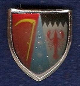 (aplicat Cea de-a II-a insignă are forma geografică micşorată al actualului contur al ţării în culorile tricolorului, dispuse vertical.